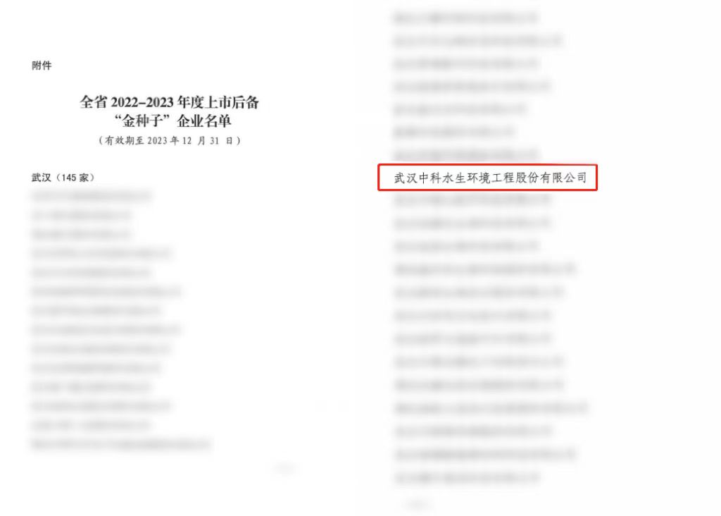 5月27日,湖北省2022-2023年度上市后备“金种子”企业发布会在武汉小龟山金融文化公园召开,武汉中科水生环境工程股份有限公司位列名单之中,成为湖北省上市后备“金种子”企业。湖北省人民政府副省长宁咏出席会议并讲话,省地方金融监管局党组书记、局长段银弟主持会议,湖北证监局局长党委书记、局长王广幼、省政府办公厅二级巡视员林竹青、省地方金融监管局副局长严宓、武汉市副市长赵峰及省上市工作领导小组成员单位相关负责同志,各市(州)、直管市、神农架林区政府分管领导同志、武昌区政府主要负责同志、省级重点上市后备企业代表,金融机构负责人出席会议。中科水生董事、常务副总经理、财务总监兼董事会秘书申刚参加会议。