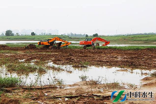 合肥高新区王咀湖生态湿地建设工程-生态补水、底质处理、生态湿地等水生态修复工程于2015年7月1日开工。王咀湖流域属于巢湖入湖支流派河上游右岸的支流之一,为环保规划内项目列入环巢湖生态?;ば薷炊诠こ獭? 王咀湖汇水面积约为7.61km2,2010年实施扩容后,湖面面积为0.61km2(610000平方米),死水位34.4m,正常蓄水位37.7m,相应库容140万m3,50年一遇设计洪水水位38.3m,500年一遇校核洪水位39.6m,总库容277万m3。工程实施的目标为:在彻底截污的基础上,进行水生
